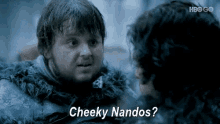 Samwell Tarly asks Jon Snow if he wants a 'Cheeky Nandos?' in this Game of Thrones scene.
