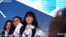 Cherprang BNK48 performs a lively dance on stage with her group members during a live event.