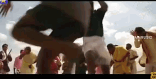 Actor Karthi performs a lively dance from the movie 'Chitapu' with a group of people in a vibrant Tamil celebration.