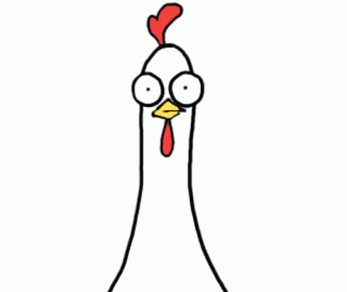 A cartoon hand chokes a chicken, which reacts with wide, surprised eyes and a comical expression.