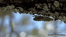A cicada, known for its summer song, is seen resting on a lichen-covered tree branch in the warm climate of Ardèche, France.