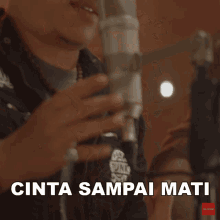 Faank passionately sings 'Cinta Sampai Mati' into a microphone, with the song title displayed on screen.