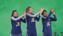 Chelsea Women's players Magdalena Eriksson, Ji So Yun, and Fran Kirby celebrating with enthusiastic clapping.
