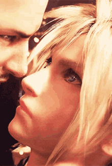 Intense close-up of Cloud Strife from Final Fantasy VII Remake, with another character's face nearby.