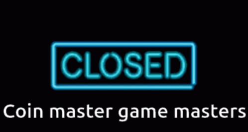 A neon sign displaying 'CLOSED' above the text 'Coin master game masters' on a dark background.