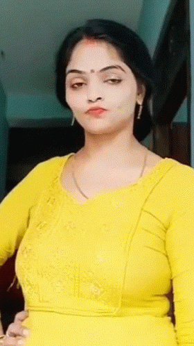 Aayu, an Indian woman, pouts and makes an 'OK' gesture while wearing a vibrant yellow kurta dress.