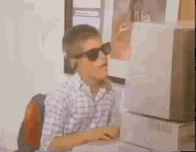 Boy with Sunglasses on Computer