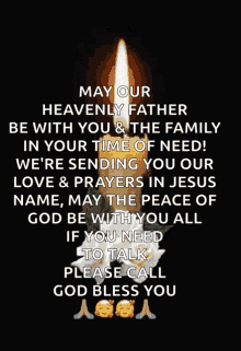 A lit candle with a heartfelt message of prayer, love, and blessings for those in need, offering solace and support.