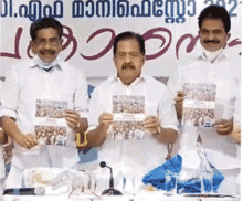 Pinarayi Vijayan and Ramesh Chennithala unveil the Congress Manifesto 2021 at a political event in Kerala.