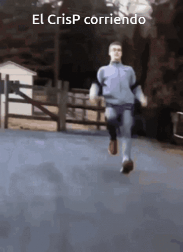 El CrisP running down a road with a unique, exaggerated stride.