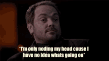 Crowley from Supernatural nods confusedly, stating he has no idea what's going on.