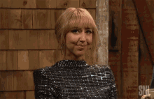 Heidi Gardner as Da Taylor Swift gives a peace sign, smiling playfully on SNL.