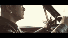 Danko Jones intensely screams while driving a car, expressing raw anger and frustration.