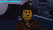 Dareth from Ninjago is first seen unmasked and surprised, then dons his mask and stands defiantly in front of futuristic vehicles.