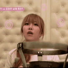 Dawon of WJSN looks confused and gasps, sitting in front of a wall with Korean text.