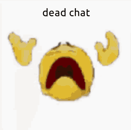 A low-resolution meme featuring the text 'dead chat' over a blurry, pixelated background, often used on Discord.