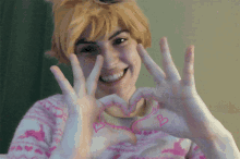 Cosplayer portraying Hideyoshi Nagachika from Tokyo Ghoul makes heart hands, embodying 'Death Of The Self'.