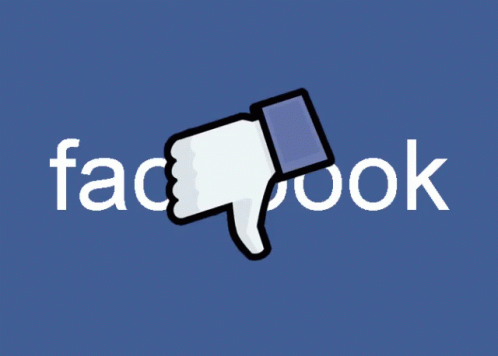 Facebook logo with a thumbs down sign on a blue background, representing disapproval.