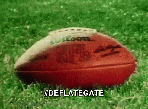 A football slowly deflates on a green field, referencing the infamous Deflategate scandal.