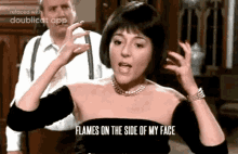 Dena Clue dramatically expresses 'Flames On The Side Of My Face' with intense hand gestures.