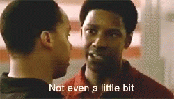 Denzel Washington and another man in a tense conversation, with the caption 'Not even a little bit'.