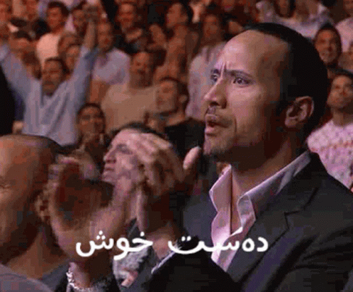 A man in a suit is seen applauding enthusiastically in front of a large crowd, with the Kurdish phrase 'Dest Xosh' overlaid.