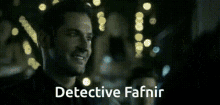 A man in a dark, crowded room with the text 'Detective Fafnir' displayed on screen.