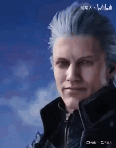 Vergil from Devil May Cry takes a large bite out of a chunk of snow against a clear blue sky.