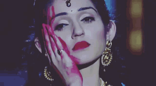 Dheera and Meera in a dramatic scene from Lahu Munh Lag Gaya, featuring a woman with red paint on her face.