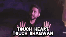 Digitalpratik reacts with a smile and hand gestures to the on-screen text 'Touch Heart Touch Bhagwan'.