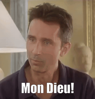 Pierre Brochant from Diner de Cons reacts with a surprised expression, exclaiming "Mon Dieu!".
