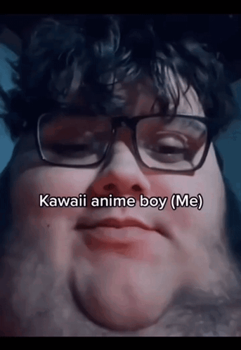 A person wearing glasses identifies themselves as a 'Kawaii anime boy' in a close-up video.