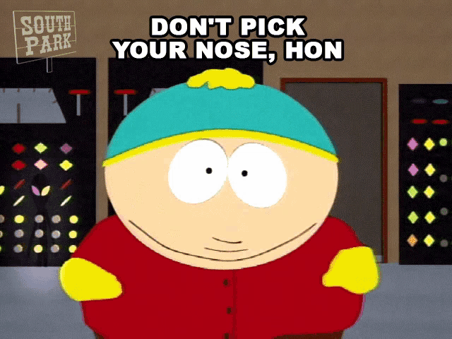 Liane Cartman tells Eric Cartman not to pick his nose in this funny South Park clip, featuring his classic angry reaction.