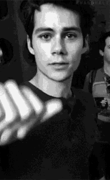 Dylan O'Brien, known for The Maze Runner, winks playfully at the camera in a black and white clip.