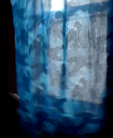 A blue curtain shaking, possibly from wind or movement, evoking an earthquake.