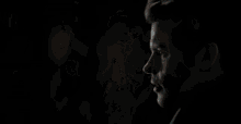 Elijah and Hayley share an intense conversation in a dimly lit setting, their expressions serious.