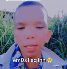 Young boy expresses 'I'm emotional' with a frustrated emoji, looking directly at the camera.
