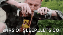 Kyle pours Mountain Dew and Monster energy drinks into his mouth, declaring '2HRS OF SLEEP...LETS GO!'.