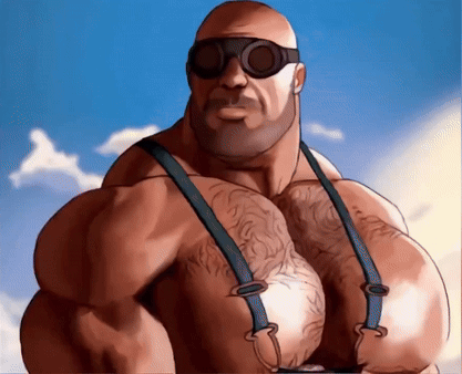 The buff TF2 Engineer Engie scratches his head, wearing goggles and suspenders under a blue sky.