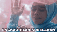 Lesti performs 'Engkau T'lah Kurelakan,' expressing deep emotion while wearing a hijab, with the song title displayed.