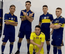 The Boca Juniors futsal team poses for a group photo in their blue and yellow uniforms.