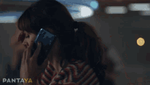 Barbara Vazquez, looking stressed and uneasy, talks on her cell phone, featured in a scene from Pantaya.