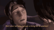 Eugene Flynn from Tangled says he has a 'thing for brunettes' in this animated clip.