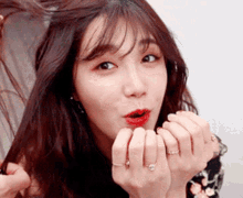 Jung Eunji of Apink makes a cute hand heart gesture, smiling warmly at the camera.