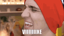 Christian Figueiredo makes an excited, funny face with the Portuguese interjection 'VIIIIIIIIXE' overlaid.