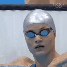 Adrienn Toth exhales and adjusts her goggles after a swim at the Tokyo Olympics.