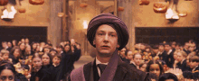 Quirinus Quirrell, played by Ian Hart, dramatically faints in the Great Hall during a Harry Potter scene.