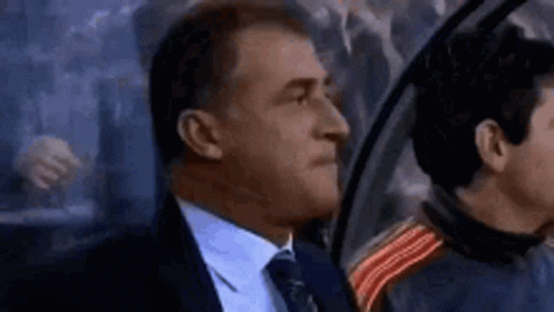 Fatih Terim, the Turkish football manager, watches intently from the sidelines, showing a subtle reaction.