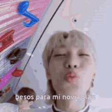 Felix from Stray Kids blows kisses to the camera, with a sweet message for his girlfriend Clau.