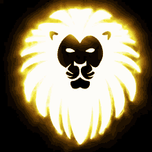 A striking animated logo featuring a lion's head with a pulsating, glowing white mane against a dark background.